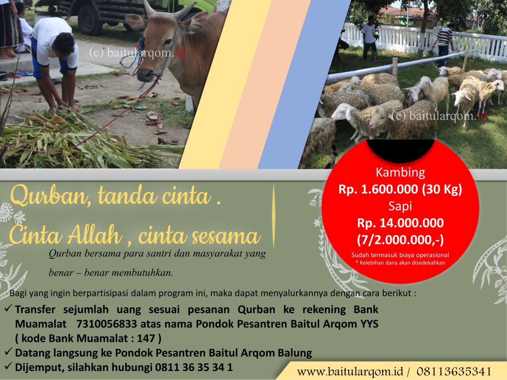 Pondok Pesantren Baitul Arqom memudahkan Bapak / Ibu / Saudara/i dalam berqurban. Memberikan ketentuan terbaik sebagai berikut :